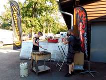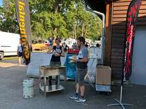 À 18 heures, nous nous rassemblons près de l'ancien paddock, à l'extérieur du ring. L'équipe du MechaniXclub y fait griller de délicieuses saucisses allemandes. Un peu de calme avant la tempête fait du bien.